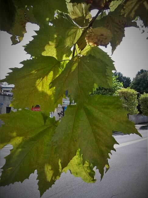 Il platano si riconosce poi dalle foglie, palmato-lobate a 3 5 lobi, con inserzione alterna sul rametto, decidue, mediamente coriacee, che raggiungono dimensioni di 25 cm.